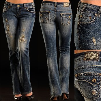 Rock and Roll Cowgirl Asymmetrical Deco Design Low Rise Boot Cut Jean Review
